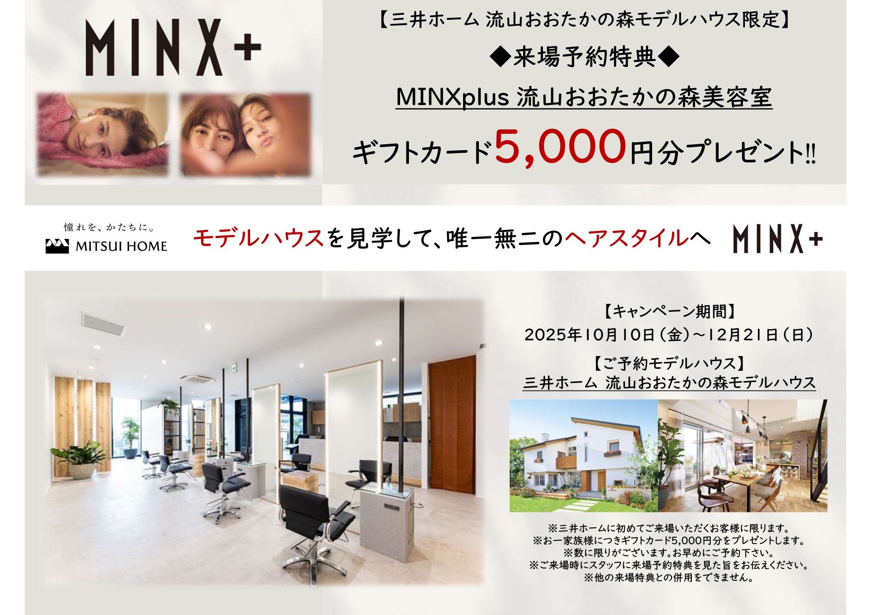 ★ご来場予約特典★MINX plus流山おおたかの森美容室 ギフトカード5,000円分プレゼント‼
