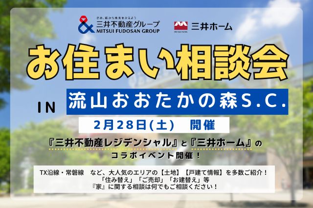 2/28(土) 流山おおたかの森・TX沿線土地情報・お住まいづくり相談会@流山おおたかの森S・C