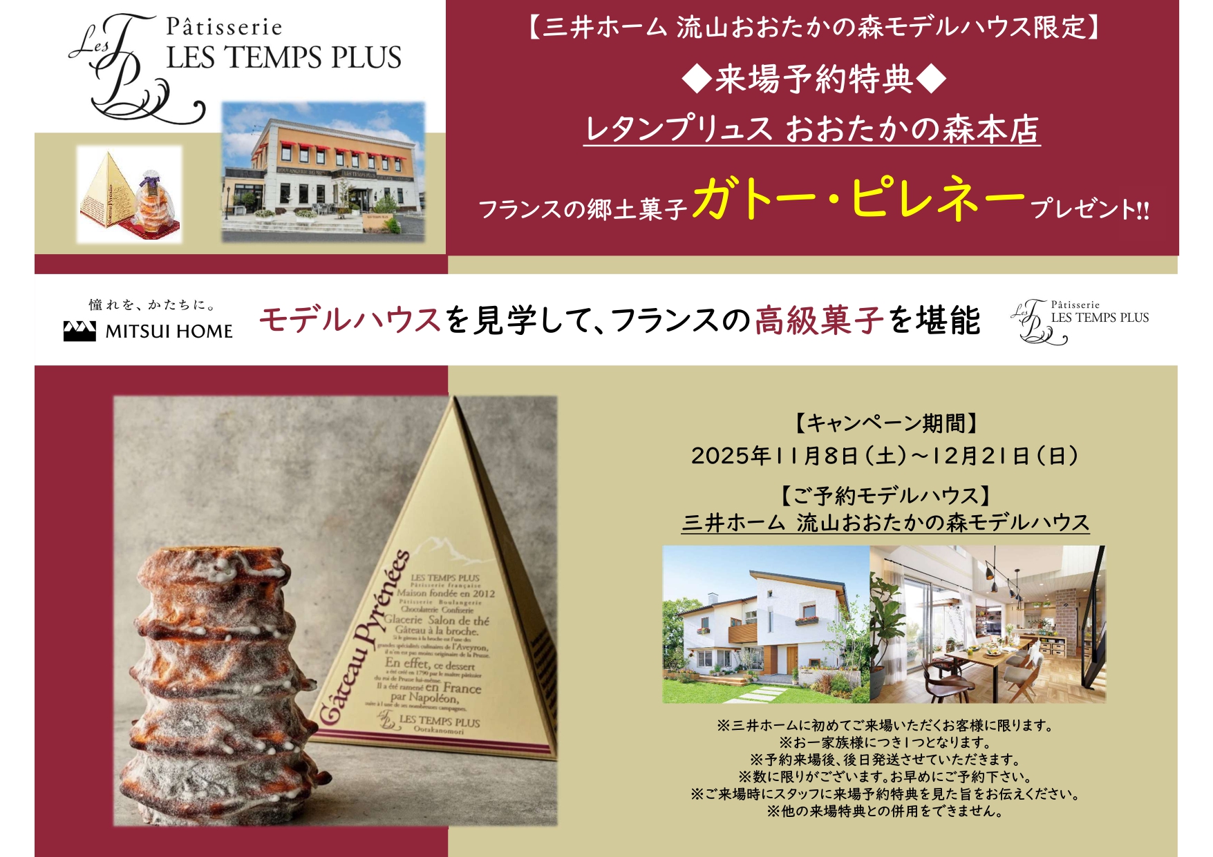 ★ご来場予約特典★ レタンプリュスおおたかの森本店 『ガトー・ピレネー』プレゼント‼