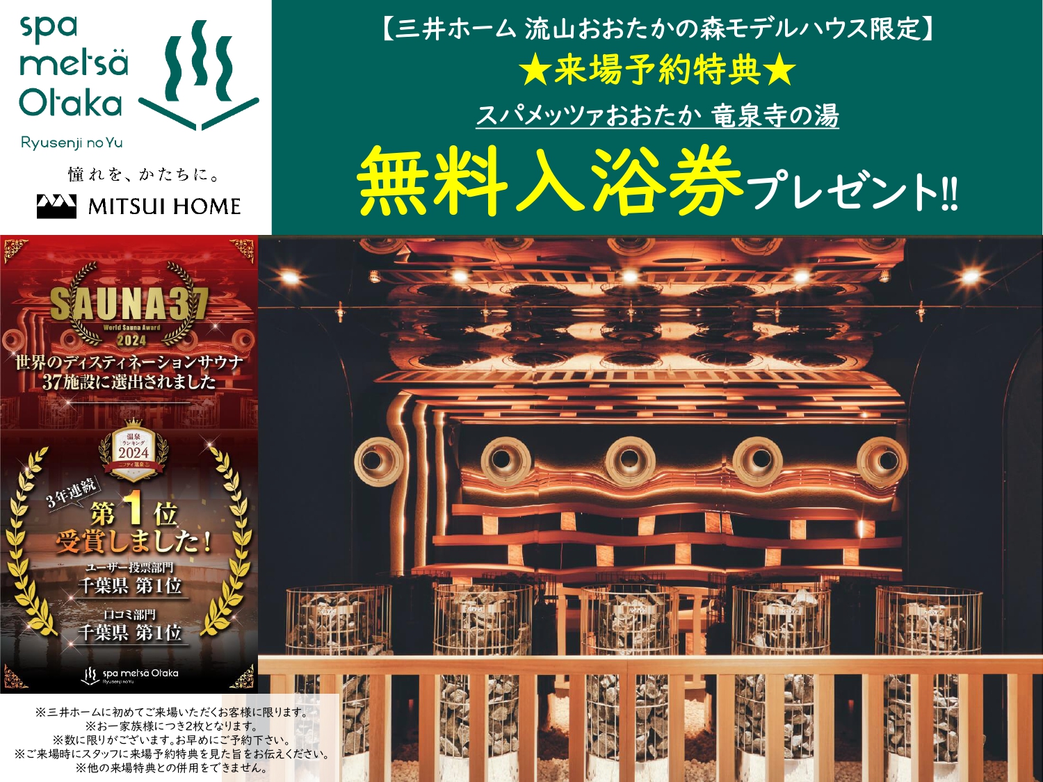 ★ご来場予約特典★スパメッツァおおたか 竜泉寺の湯 無料入浴券プレゼント‼
