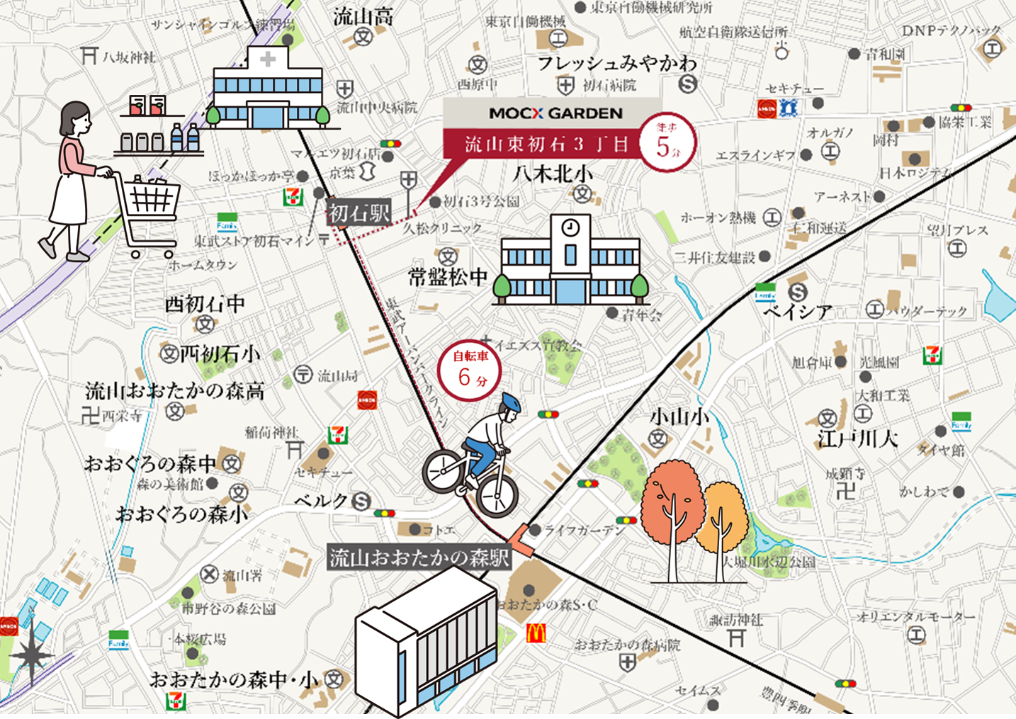 ◆つくばエクスプレス 「流山おおたかの森」駅まで自転車6分