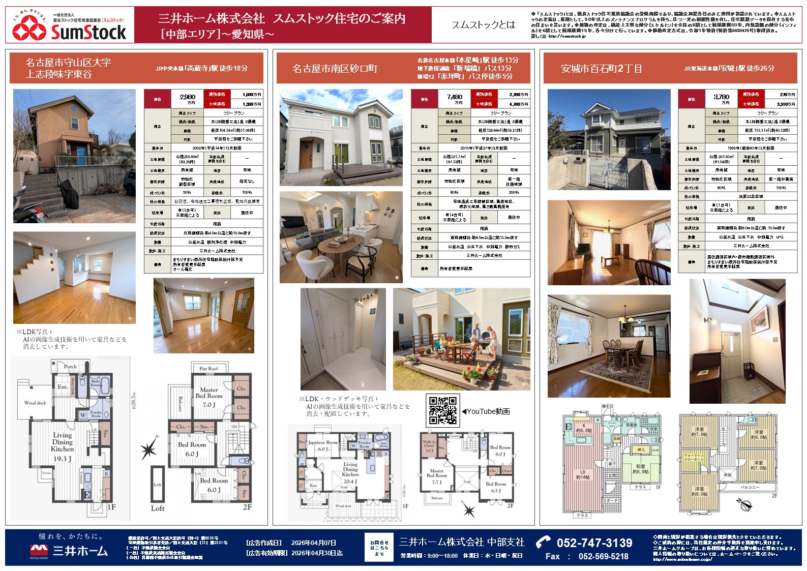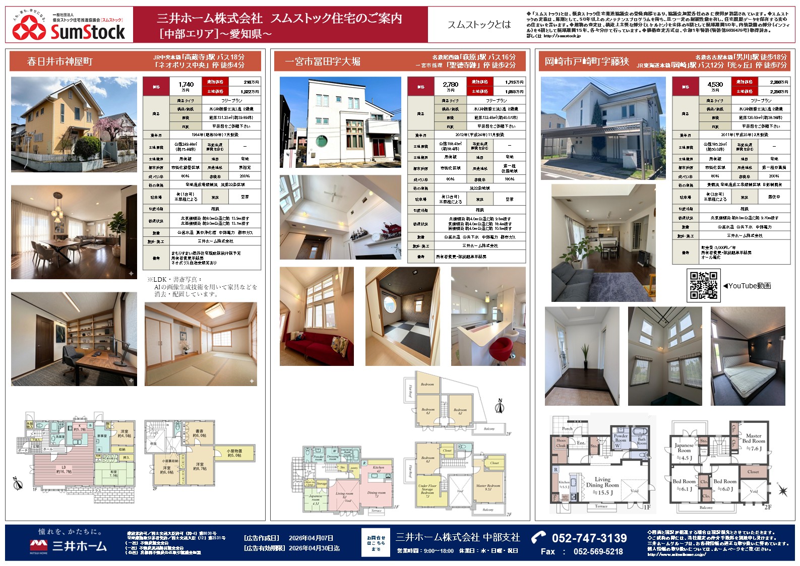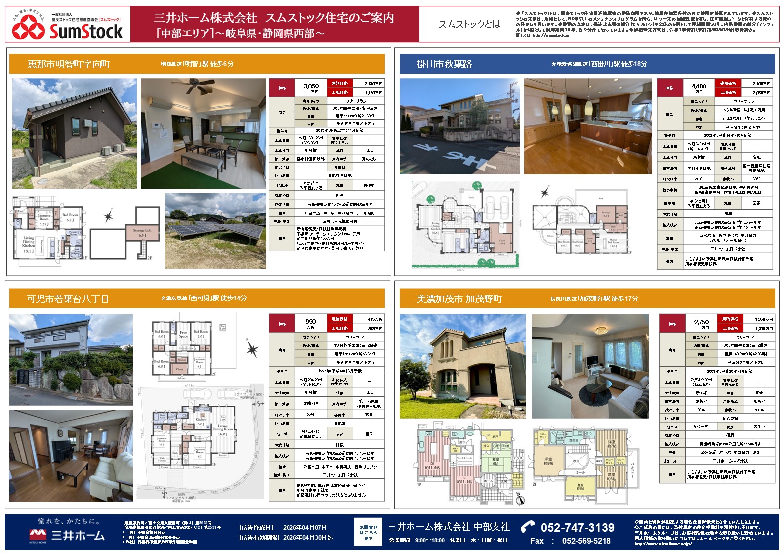 中部支社にて取り扱っているスムストック住宅のご案内です。