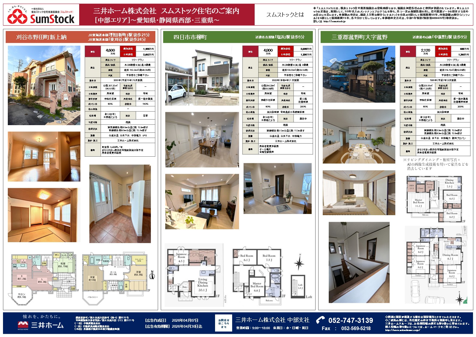 愛知・岐阜・三重・静岡(西部)|スムストック住宅情報