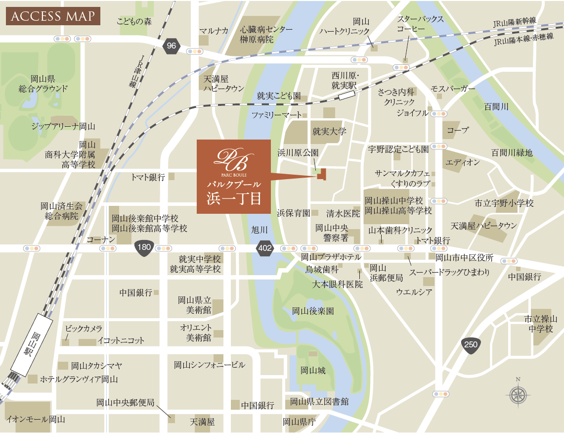 宇野バス「浜(岡山プラザホテル前)」バス停 徒歩8分