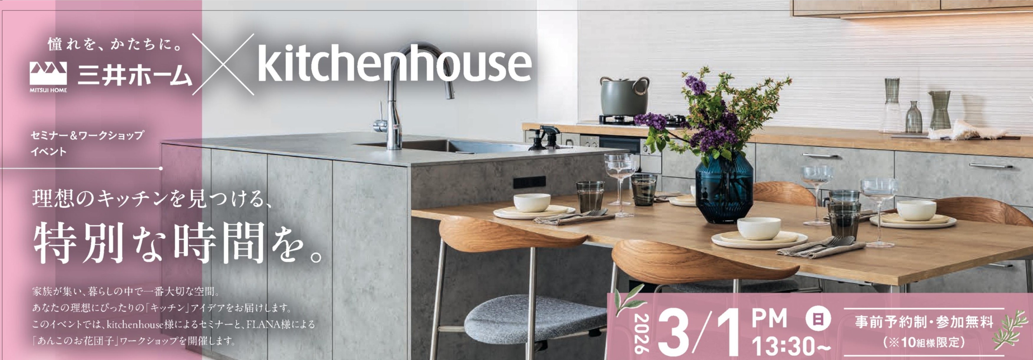 キッチンハウス様によるセミナーと、FLANA様による『あんこのお花団子』ワークショップを開催します。