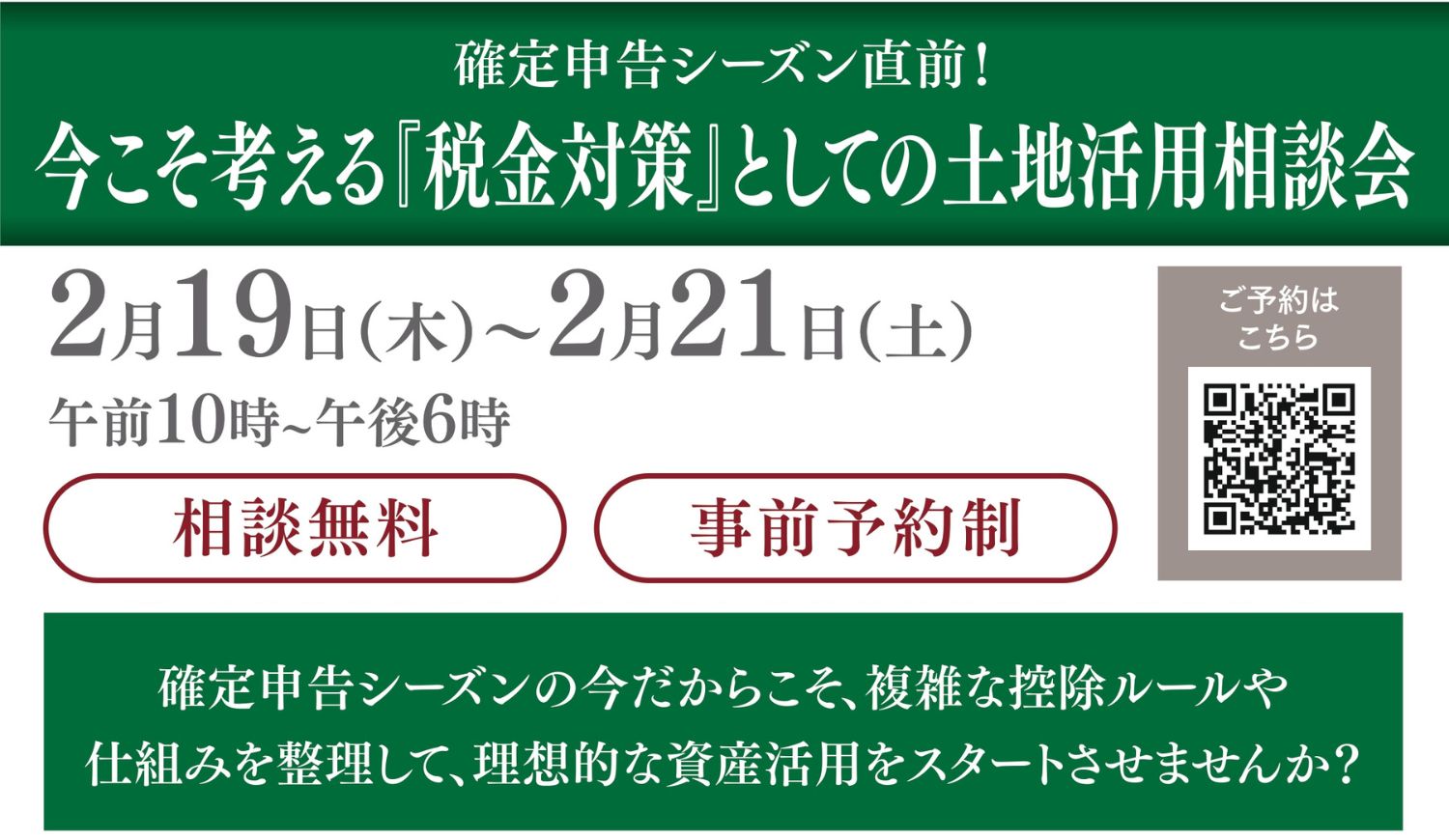 【住まいの総合サロン・川越】確定申告シーズン直前!今こそ考える『税金対策』としての土地活用相談会