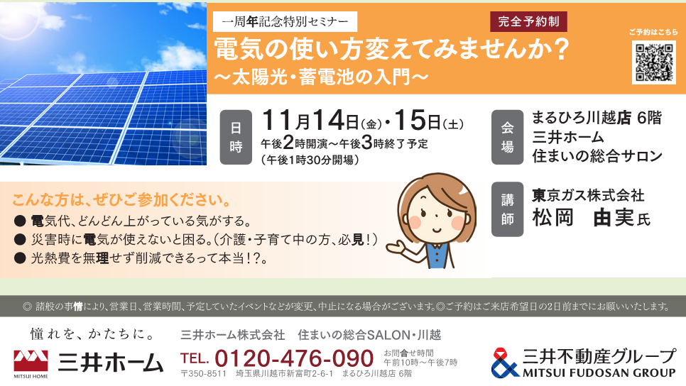【住まいの総合サロン・川越】電気の使い方変えてみませんか? ~太陽光・蓄電池の入門~