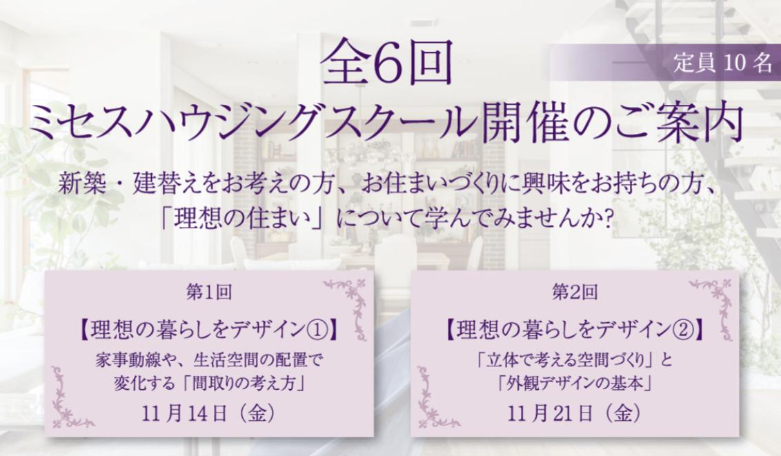 「全6回!ミセスハウジングスクール開催のご案内」