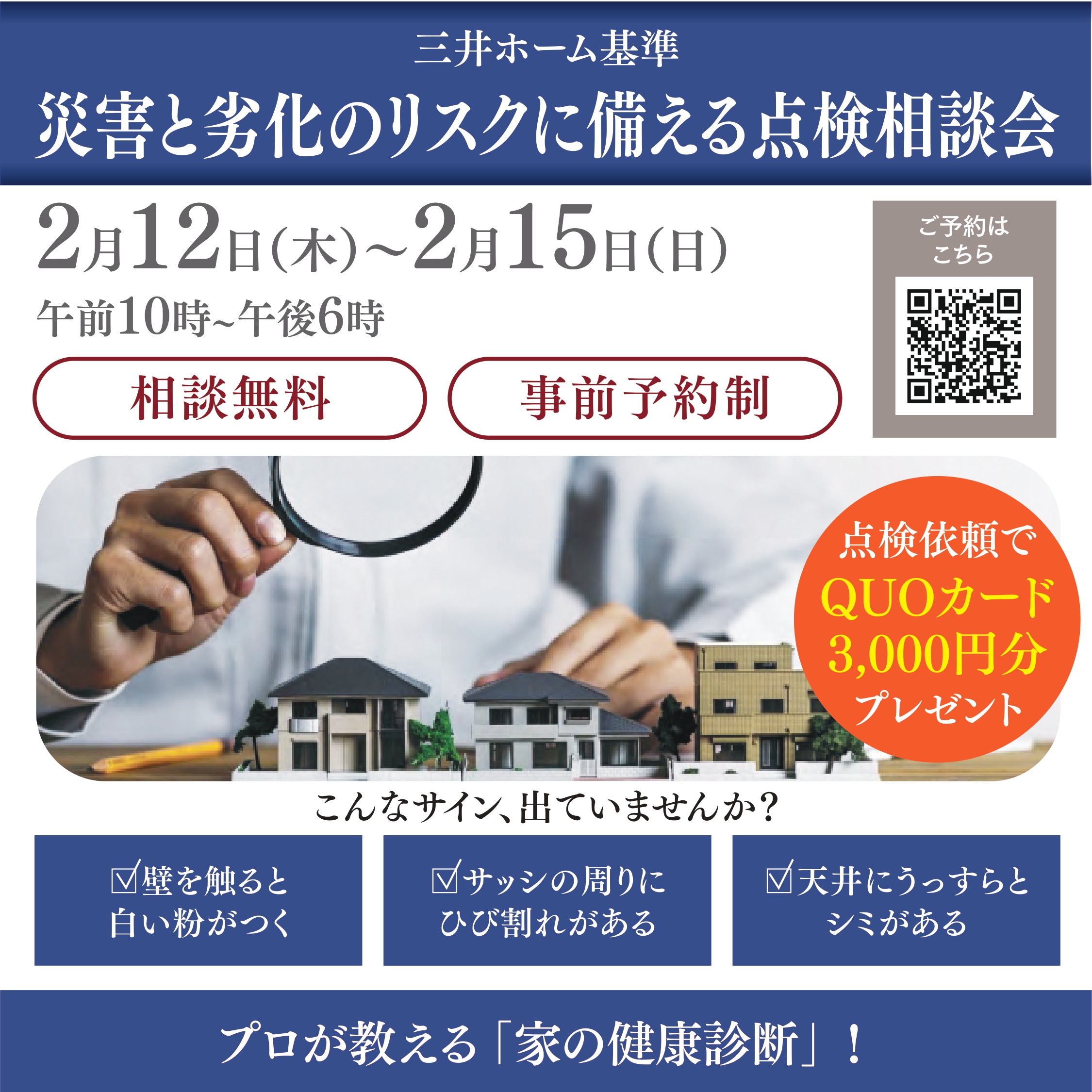 【住まいの総合サロン・川越】 「三井ホーム基準」 災害と劣化のリスクに備える点検相談会