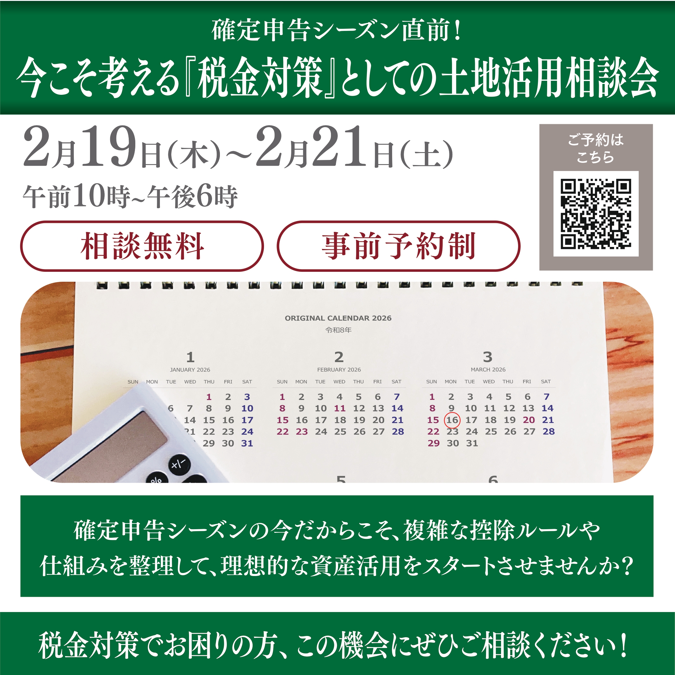 【住まいの総合サロン・川越】確定申告シーズン直前!今こそ考える『税金対策』としての土地活用相談会