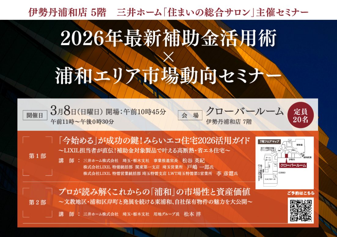 【住まいの総合サロン・浦和】2026年最新補助金活用術 × 浦和エリア市場動向セミナー