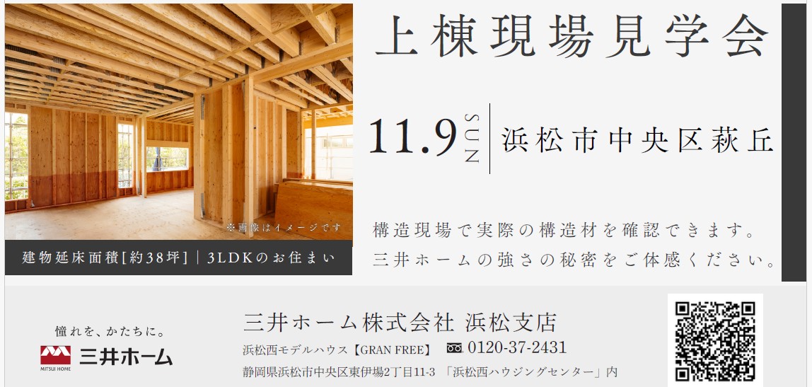 11月度:浜松市中央区荻丘 上棟現場見学会