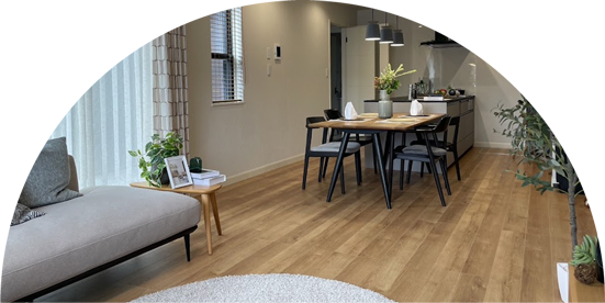 やわらかな木肌と心地よい足ざわりのオーク材の床。四季を通して素足で歩きたくなるようなやさしさで、暮らしに穏やかな上質を広げていきます。