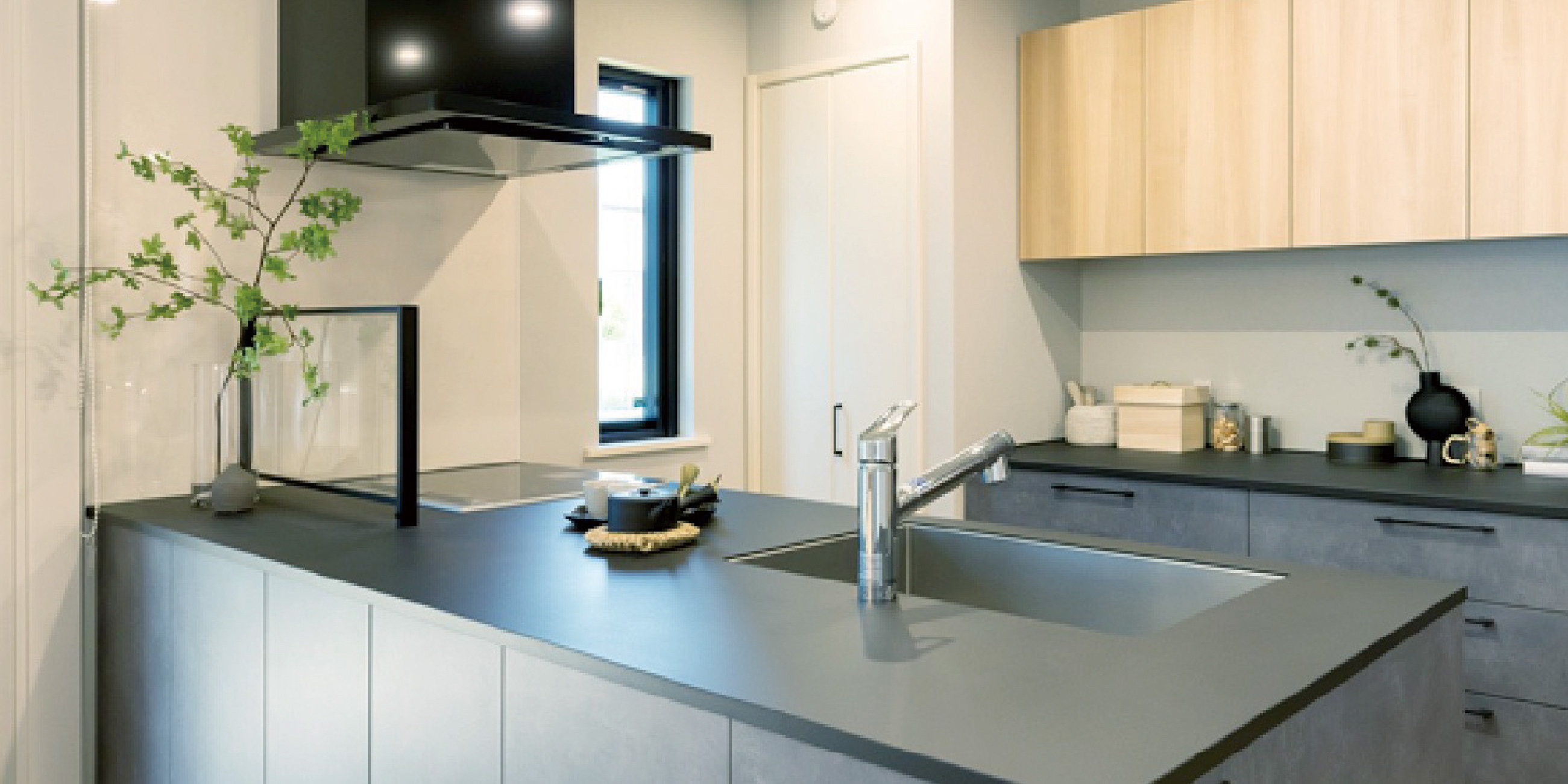 四方に空間の広がるアイランドキッチン。家族と同じ時間を共有し、料理や片付けも一緒に楽しめる、暮らしの中心です。