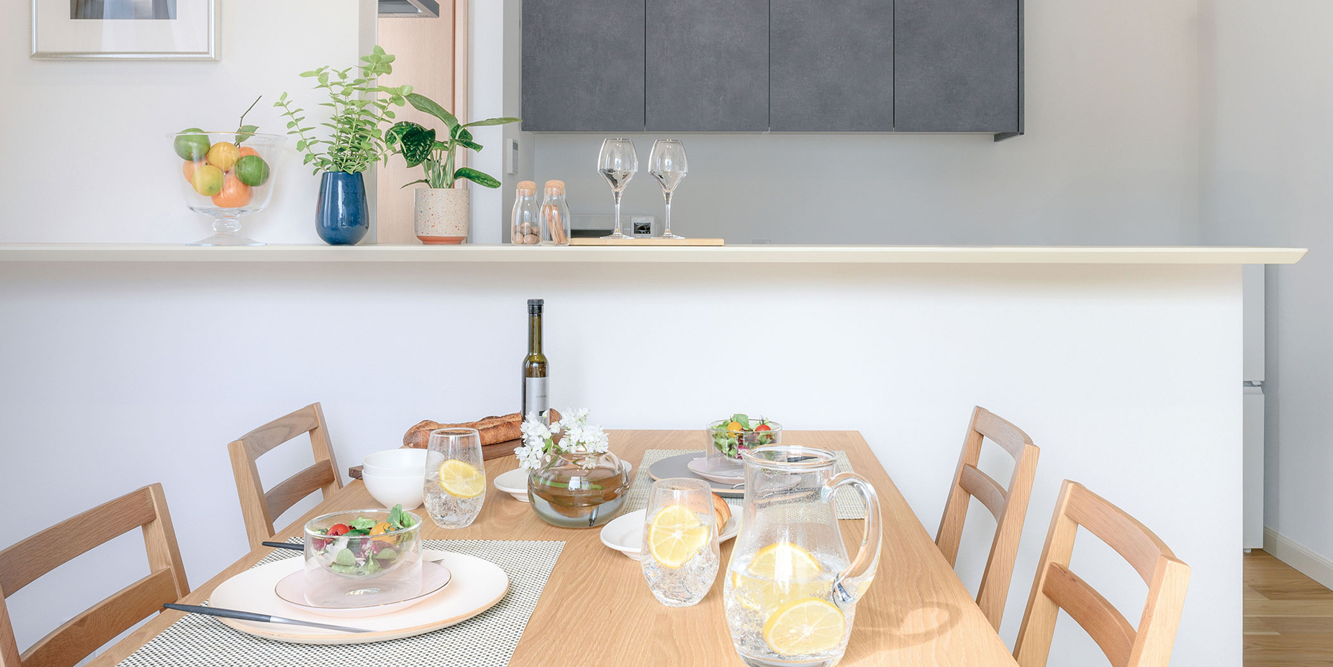 床や建具に木目を取り入れたデザインは、視覚的にも触感的にもやさしい印象。トレンドを押さえながら、長く愛される落ち着いた住まいを実現しています。