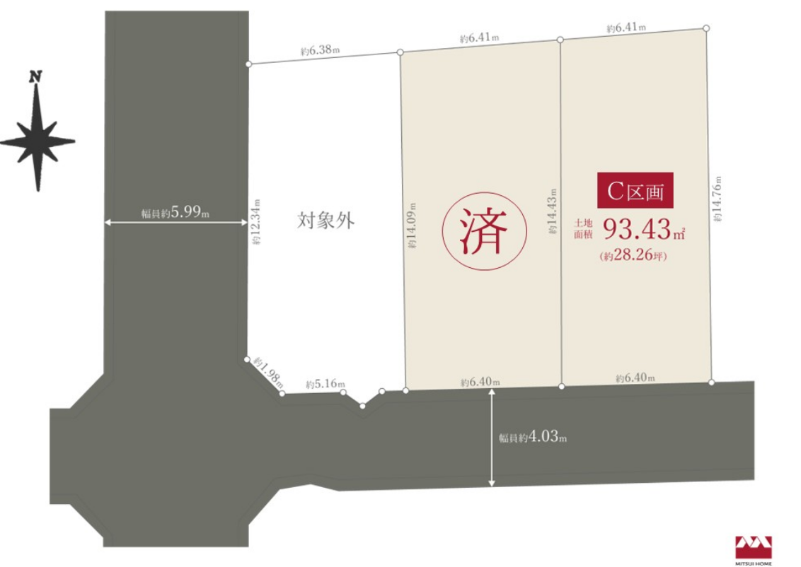 ●土地面積/C区画: 93.43㎡(約28.26坪)