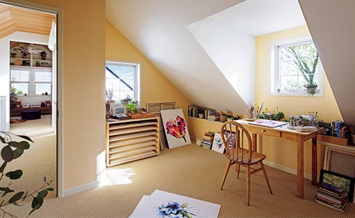 平屋でありながら伸びやかに広がる大空間や、こもり感のある快適な屋根裏空間も実現しています。