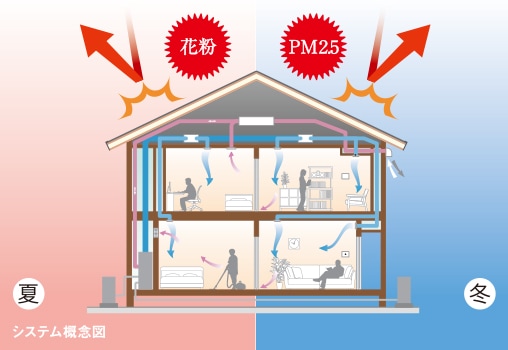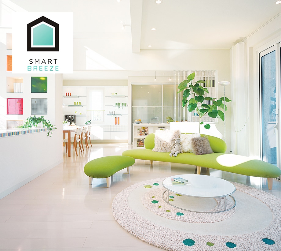 三井ホームは、空気品質。オリジナル健康空調システム「スマートブリーズ」。家じゅういつでも・どこでも、快適で清々しい空気が循環することで、家事の軽減やご家族の健康を守ります。
