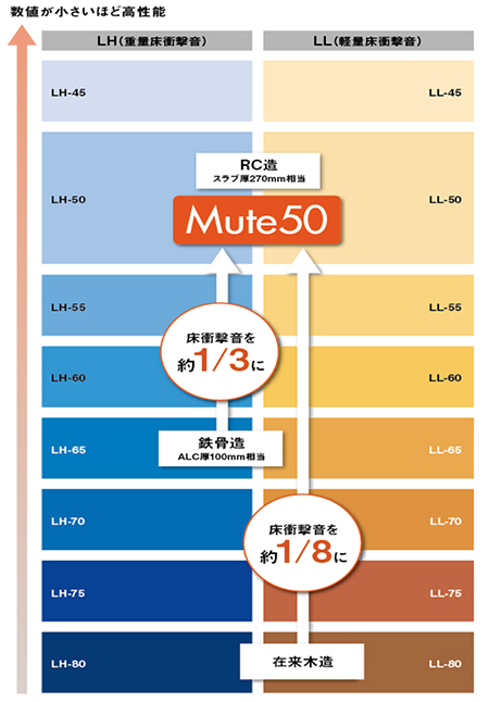 ※遮音等級はLH50、LL50等数値で表し、数値が小さいほど遮音性能が高いことを意味します。