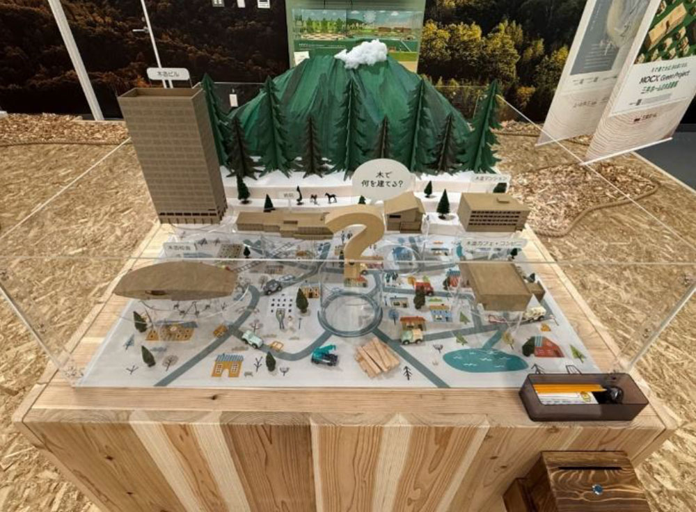 ・木で創れば街は森になる:木造建築のミニチュア模型で街を再現し、木造で創りたいものを来場者にアンケートをとり、みんなで街を森にすることを体感。