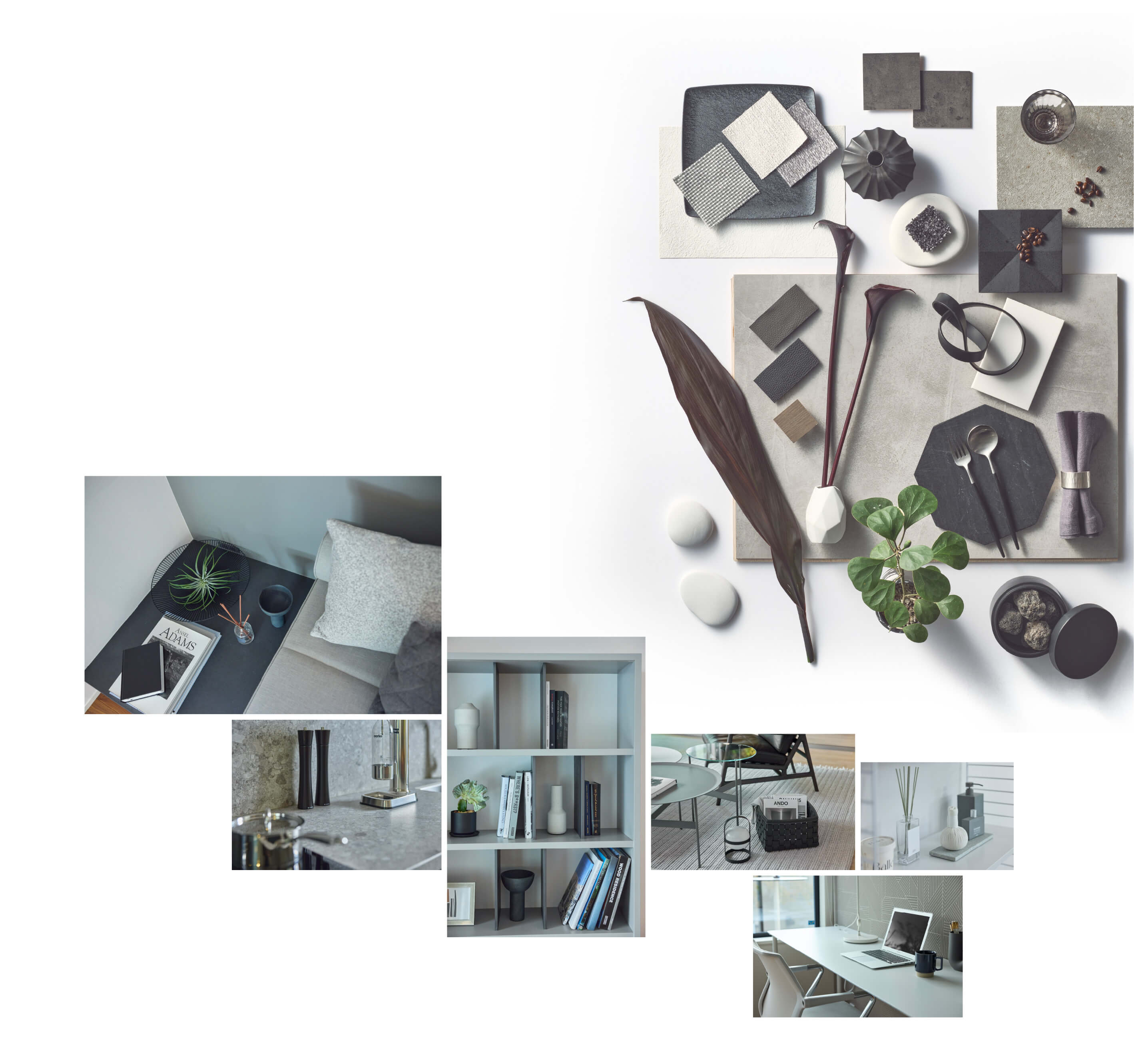 モノトーンと直線的なフォルムを組み合わせ、 無駄のないすっきりとしたデザインで 静かな秩序とクールさを演出するスタイル。