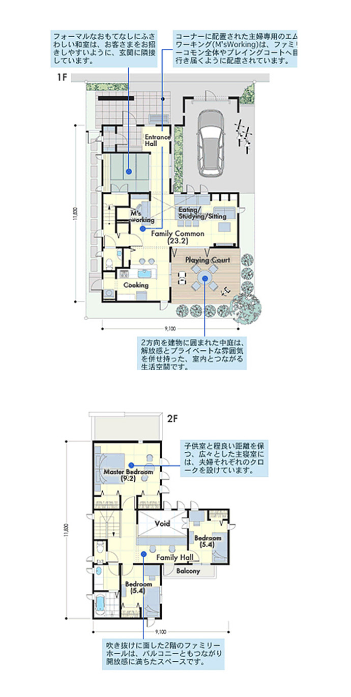 住まいを中庭や2階まで取り込んだ