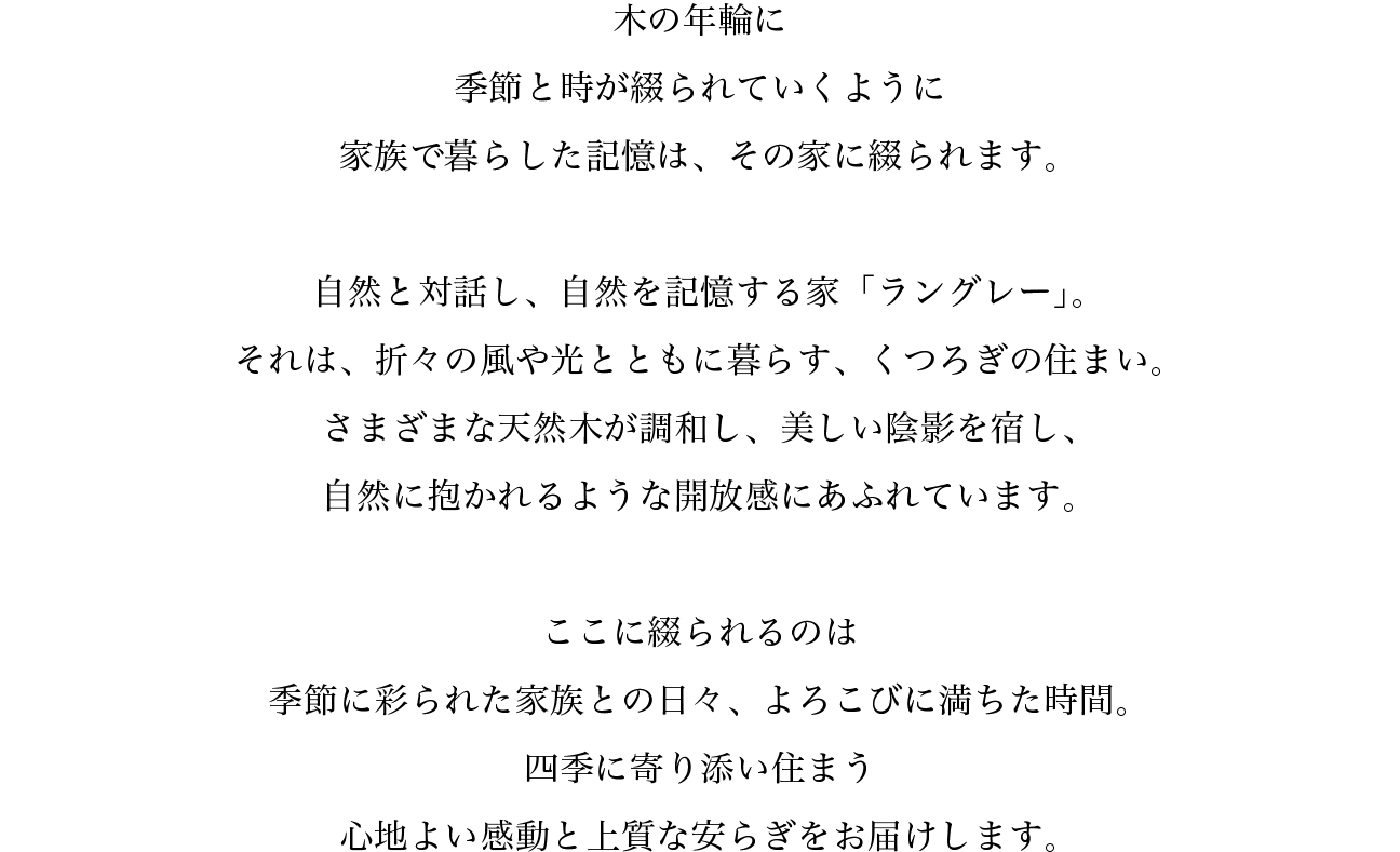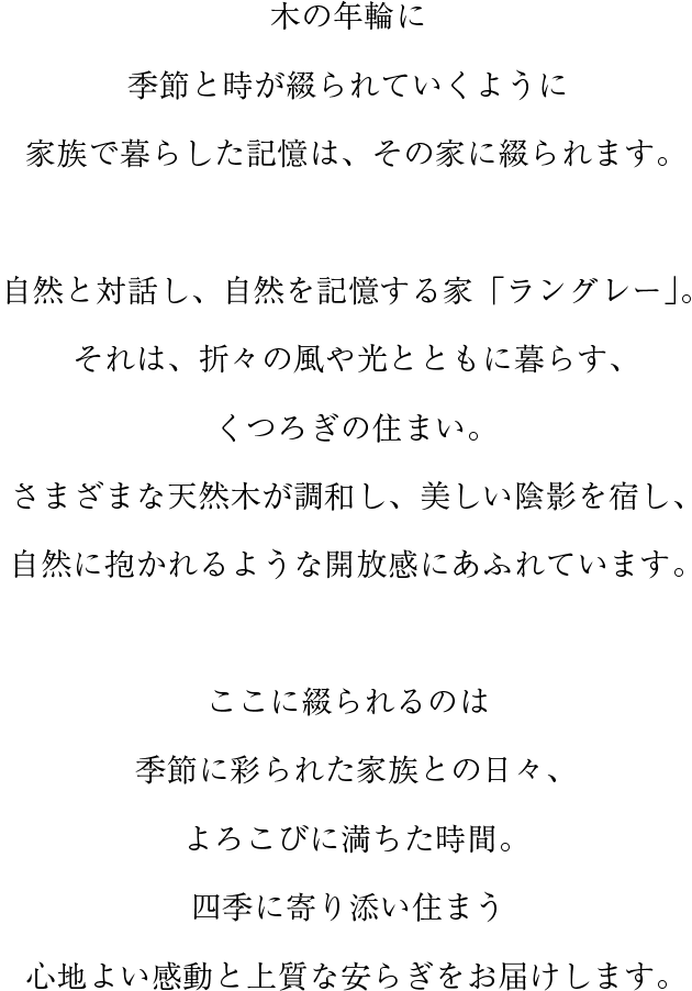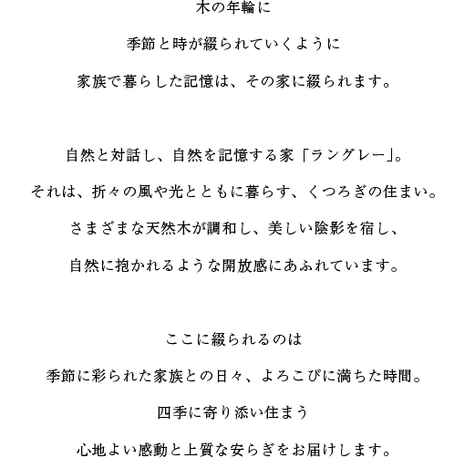 四季の日照を調節して居住性を高め、外装を緩やかに経年優化させます。