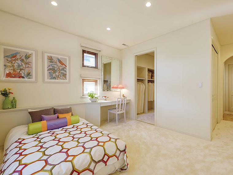 夫婦の生活サイクルの違いに配慮し、緩やかにセパレートした主寝室。