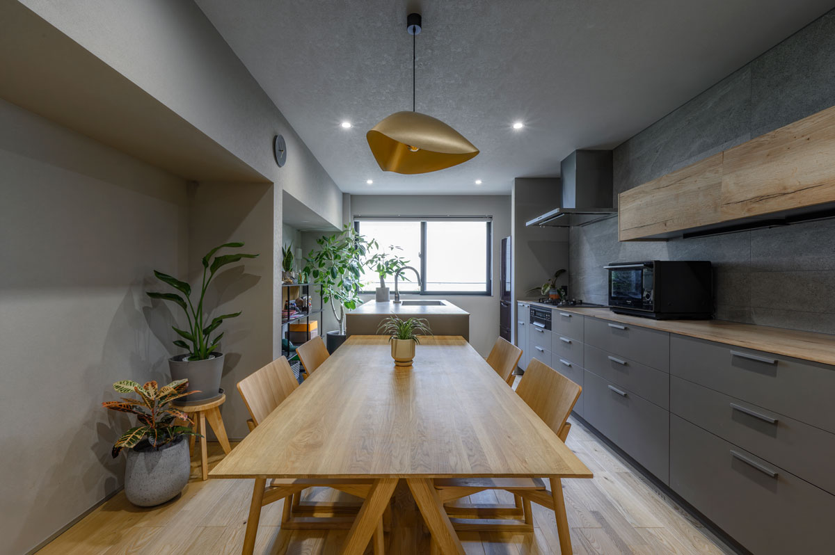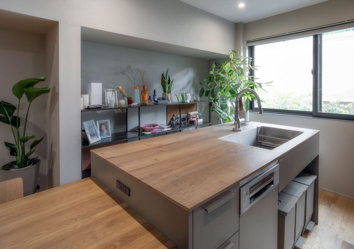 そこに観葉植物を配置して、落ち着いた内装にまとめています。