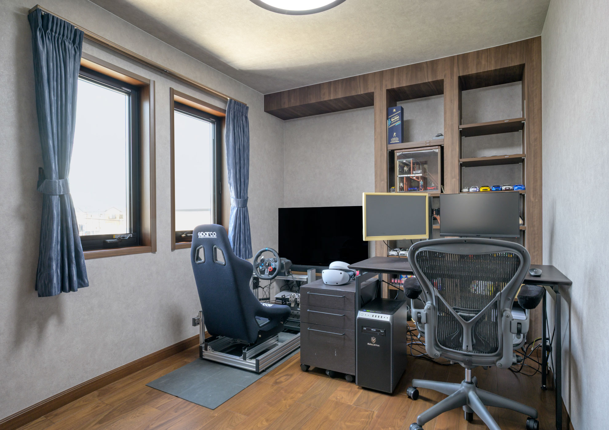 2階は主寝室のほか、夫婦それぞれの書斎も設けられた。広さはともに約6畳。ご主人の部屋は、ブラックウォルナットのフローリングを選択。落ち着いた雰囲気にコーディネート。