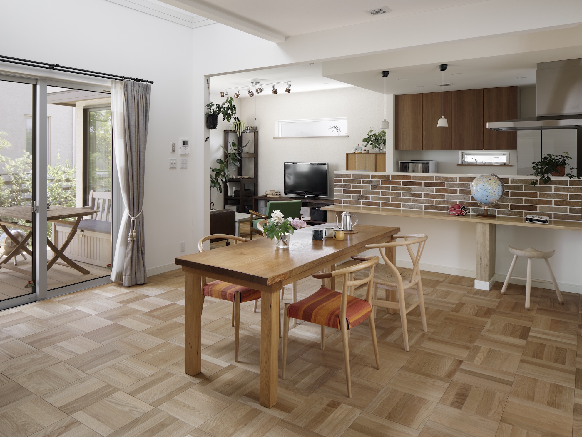 家族の気配をいつも感じられるようにダイニングを中心にレイアウト。北欧スタイルの家具がマッチし、カジュアルになりすぎず、上質なナチュラル感を演出。