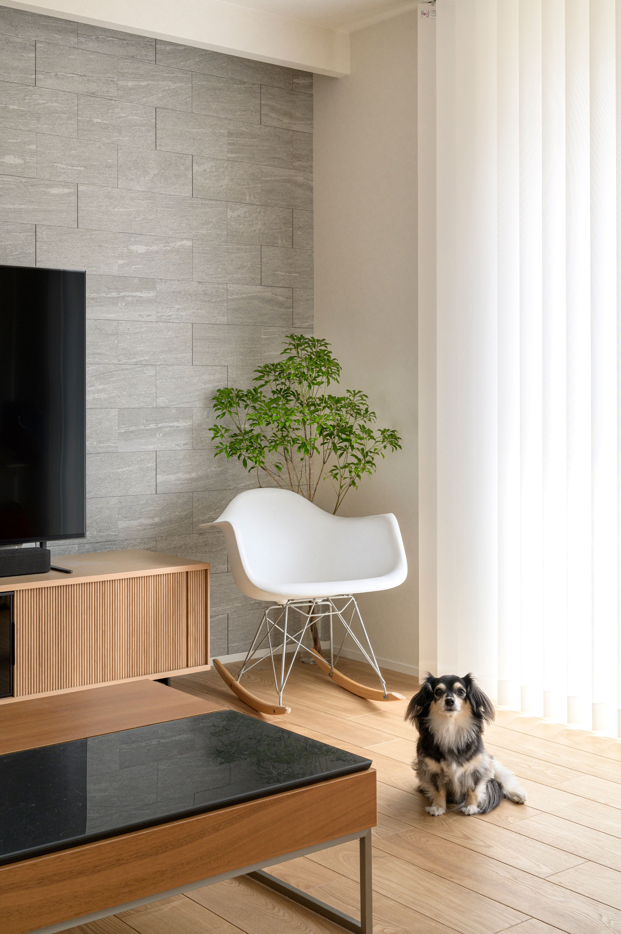 家族と犬が一緒にのびやかに暮らせる家にしたいと思い、マンションからの住み替えを決めました。キッチンからは1階だけでなく2階や庭にも目が届きます。みんなでひとつの家に住んでいるという一体感を味わえるのがいいですね。開放感と落ち着き、穏やかさを感じられる空間。そんな要望を掲げた私たちと一緒になって、三井ホームのスタッフの方々はベストを尽くしてくれました。何ひとつあきらめることなく、プランニングに取り組んでくれた姿は一生忘れられないと思います。おかげで、毎日ストレスなく暮らせる家ができました。好きなインテリアの中で生活できるのは、ほんとうにうれしいことです。