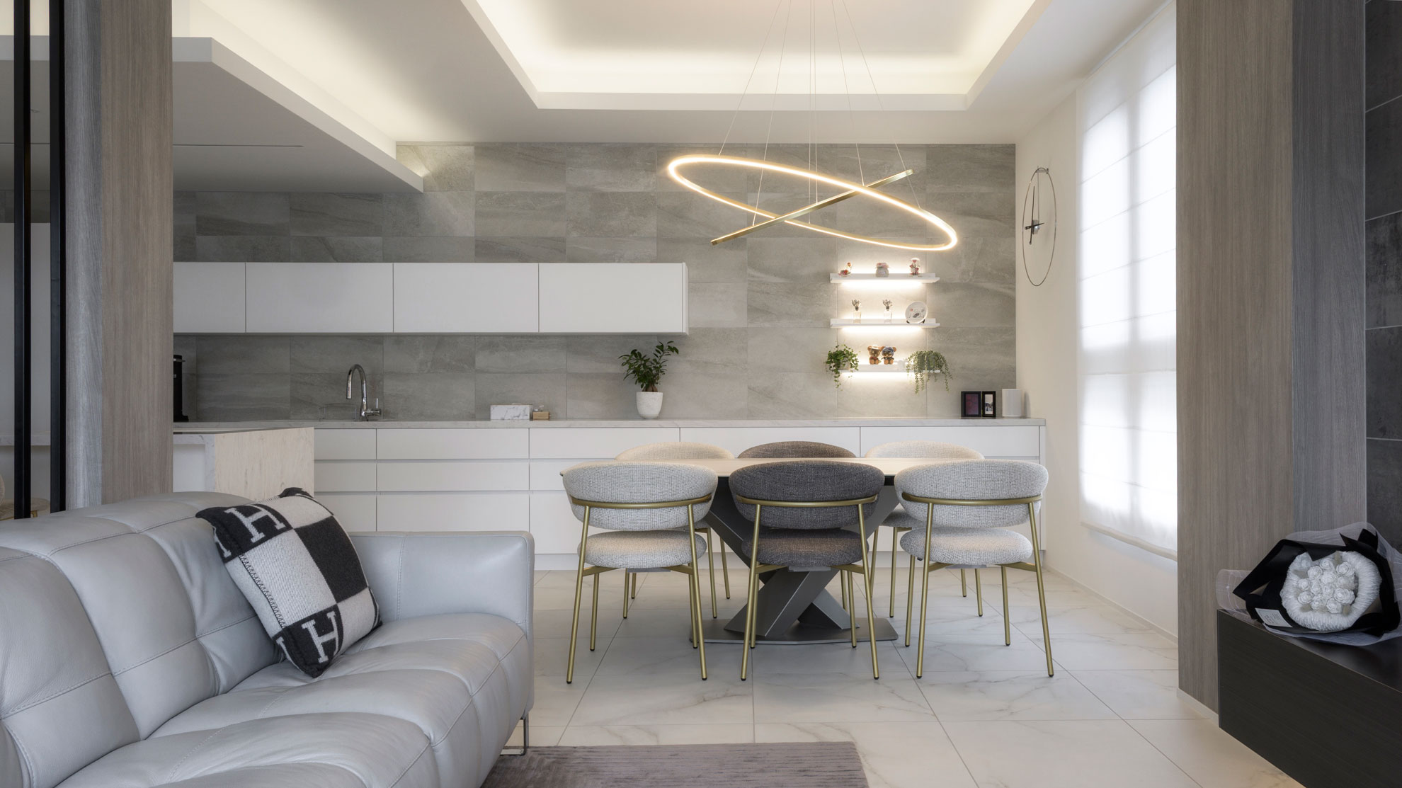 息子の独立もあり、住まいを建て替えることにしました。今度は終の住処になるような、自分たちの好みを存分に生かした家にしたい。そんな願いに応えてくれたのが三井ホームでした。私は電気設備の会社を営んでいるので、1階にはオフィスの空間も確保。2階のLDK は家族と社員、友人でリラックスするスペースに。家全体が、上品でくつろげるホテルライクインテリアにまとめることができて満足しています。間接照明やライン照明など、やってみたかった空間演出を実現することができて、とてもうれしく思っています。