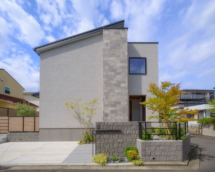サークルとスクエアが絶妙なバランスで、アイコニックなデザインの2階バルコニーがランドマークの住まいです。