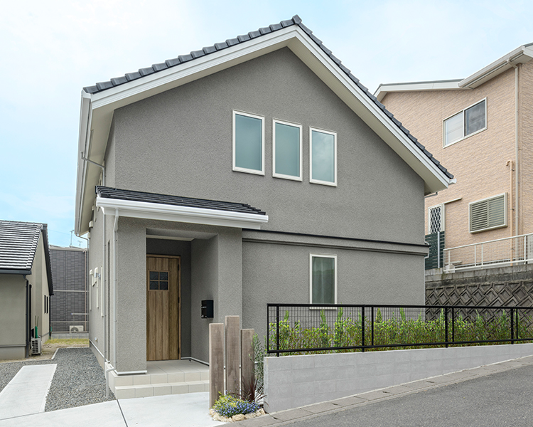 室内のクロスは、ライトグレーで色味を抑えてモダンにまとめ、ラスティックオークのフローリングで木の温もりをあしらっています。