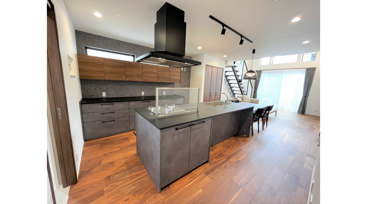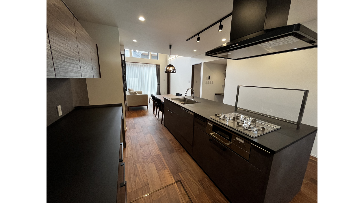 日々の忙しさを解消する、工夫の詰まった邸宅です。共働き世帯に大人気のガス衣類乾燥機「乾太くん」を標準装備し、洗濯の時間を大幅に短縮。キッチンは、家族との会話が弾むアイランドキッチンを採用し、背面収納も2m70cmと大容量。 また、平屋の広い屋根を活かし、7.2kWの大容量太陽光発電を搭載しています。全館空調の快適さを維持しながら、光熱費を抑え、災害時にも安心な「ZEH水準」を超えるスペック。仕事に集中できるリモートワークスペースも完備し、新しい時代のライフスタイルを支えます。