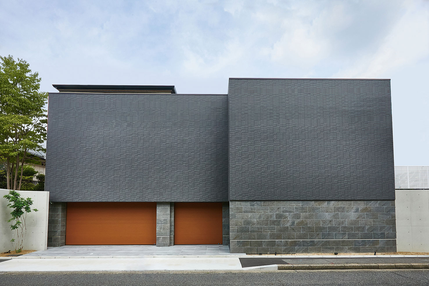 都市の喧騒を隔てる重厚な壁に、研ぎ澄まされた意匠。内なる光と緑を解放し、静謐な時を紡ぐ私邸。