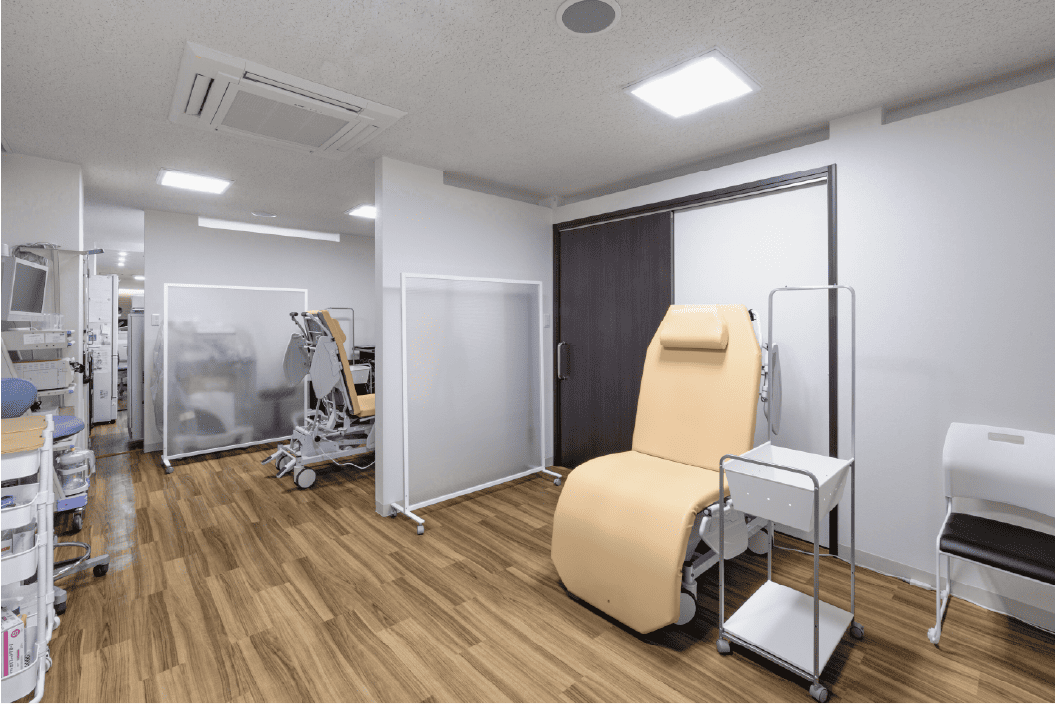 検査室は先生ご指定の大型分析装置の搬入経路と広さを確保しつつ、間仕切りを斜めにすることで隣接通路の幅を狭めず、患者様が車椅子でも通れる広さに。感染症外来患者様のための隔離室には医療用紫外線照射装置を導入し、ビルテナント特有の不利な換気条件をカバー。隔離室の様子が受付からもわかるように室内窓もご提案しました。水廻りの新設は中廊下を床上げしてスロープを設けることで給排水の勾配を実現。随所に工夫を凝らしながらも、先生と密に連携を取り合えたことで2ヵ月という工期を遵守させていただくことができました。