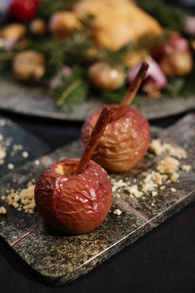 と敬遠しがちな方が多いのですが、実はパーティ料理にはぴったりなのだとか。「オーブンに入れてしまえば、あとは待つだけで料理が仕上がってしまうので、その間に片づけをしたり、テーブルセッティングをしたり。できあがる時間が計算できるのもいいですね。クリスマスには、ぜひ丸鶏のローストを。これが意外なほどに簡単なのです!下処理をした丸鶏をオーブンに入れ、付け合わせも一緒に焼いてしまえばできあがり。ダイナミックな鶏の丸焼きはそのままでパーティの主役になります。付け合わせには彩りの美しい野菜を選ぶといいですね。デザートには、これもオーブンでできる焼きりんごを。意外とオーブン1つでできる料理は多いので、徐々にレパートリーを増やしていくとおもてなしの席に役立ちますよ」。もみの木の飾りも、ローストチキンも、簡単にできそう!あたたかな雰囲気と手づくりの料理で、穏やかで幸せな時間をかみしめてはいかがでしょうか。