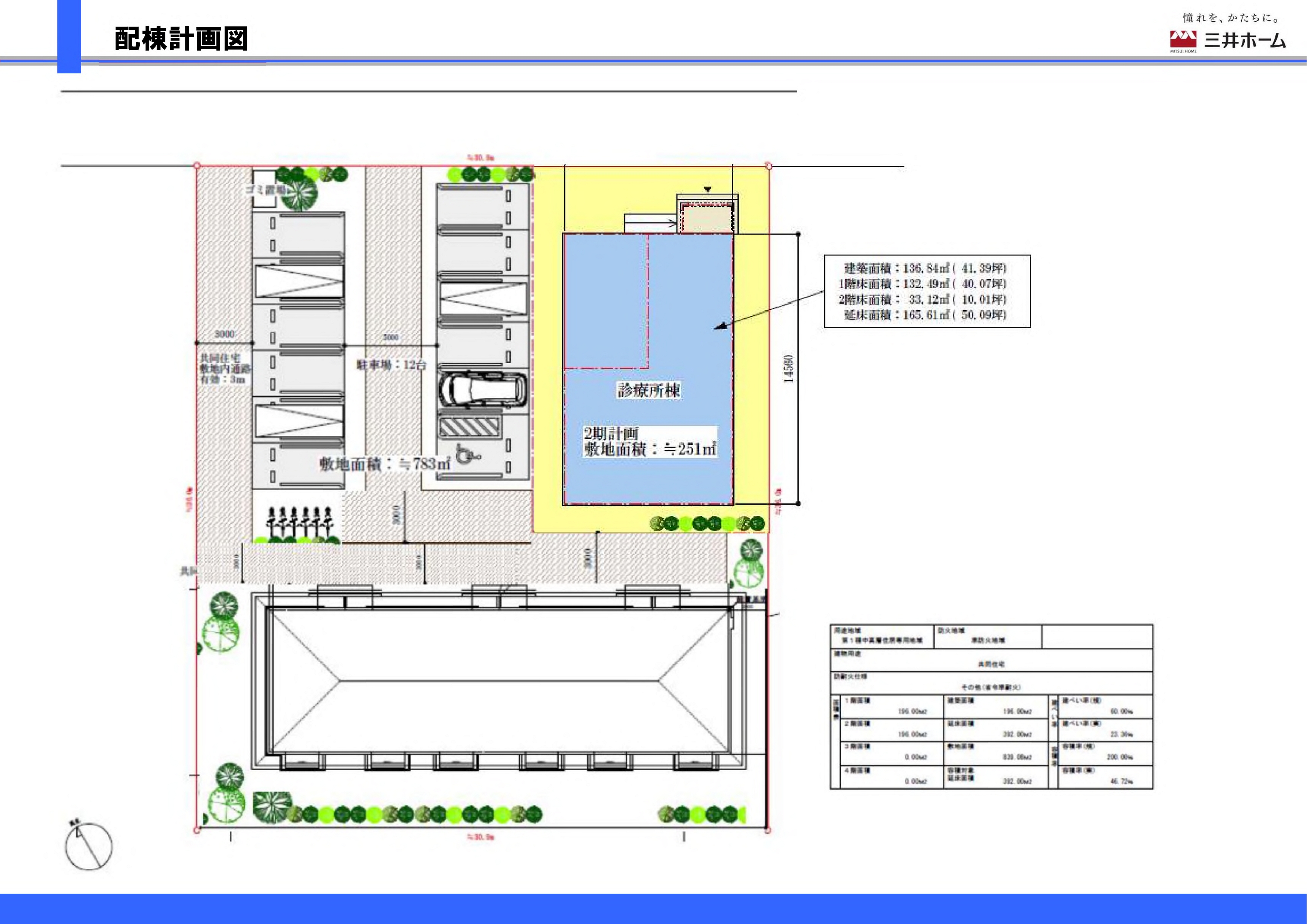 計画敷地の北側隣地の駐車場を患者用として利用することが出来ます。駐車場台数12台まで確保出来ます。