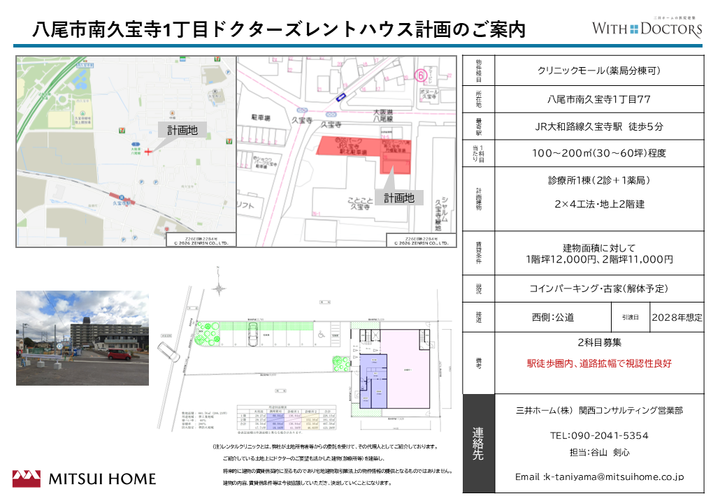 大阪府 八尾市南久宝寺1丁目ドクターズレントハウス計画